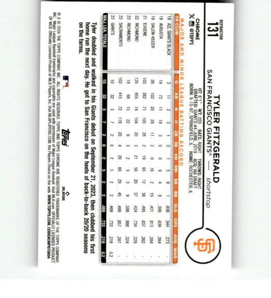 2024 Topps Chrome Refractor #131 Tyler Fitzgerald NM-MT RC Rookie San Francisco Giants Baseball Card