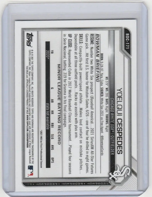 2021 Bowman Draft Chrome #BDC-171 Yoelqui Cespedes Chicago White Sox
