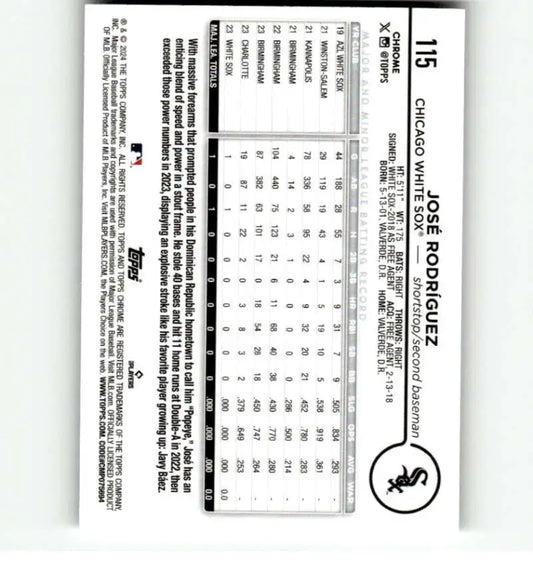 2024 Topps Chrome X-Fractor #115 Jose Rodriguez NM-MT RC Rookie Chicago White Sox Baseball Card