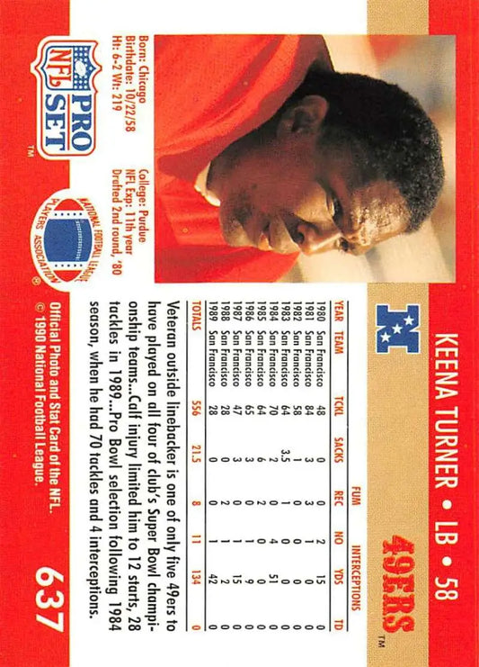 1990 Pro Set #637 Keena Turner NM-MT San Francisco 49ers Football Card