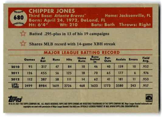 2021 Topps Chrome Platinum Anniversary #680 Chipper Jones NM-MT Atlanta Braves Baseball Card