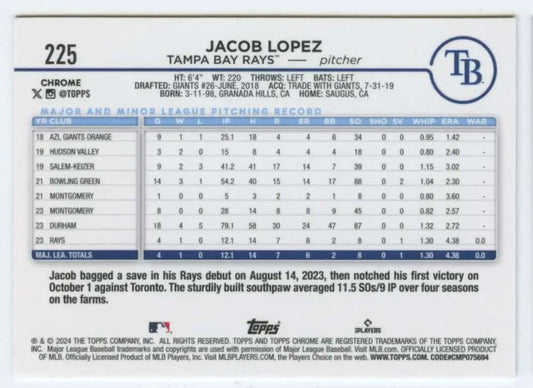 2024 Topps Chrome #225 Jacob Lopez NM-MT RC Rookie Tampa Bay Rays Baseball Card