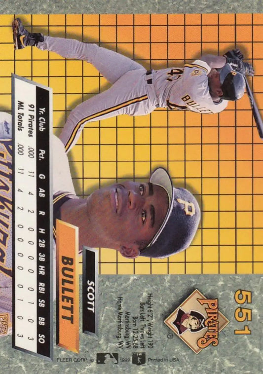 1992 Fleer Ultra #551 Scott Bullett NM-MT RC Rookie Pittsburgh Pirates Baseball Card