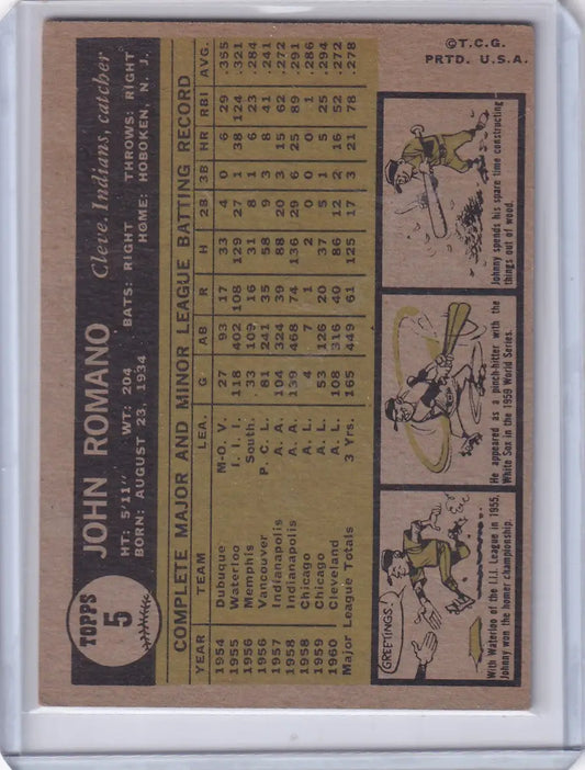 1961 Topps #5 Johnny Romano - Cleveland Indians