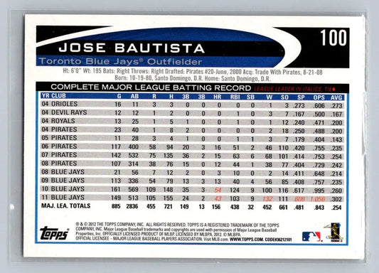 2012 Topps #100a Jose Bautista Toronto Blue Jays