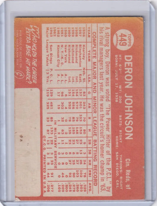 1964 Topps Baseball #449 Deron Johnson - Cincinnati Reds
