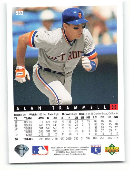 1993 Upper Deck #532 Alan Trammell VG Detroit Tigers Baseball Card