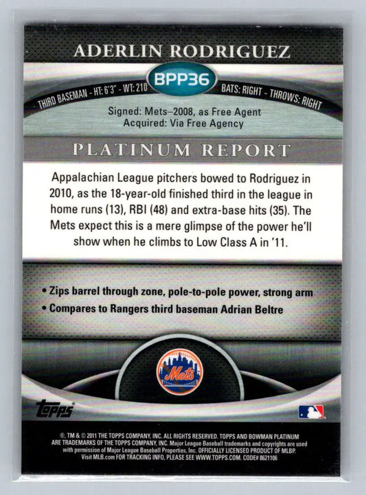 2011 Bowman Platinum #BPP36 Aderlin Rodriguez Prospects X-Fractors New York Mets