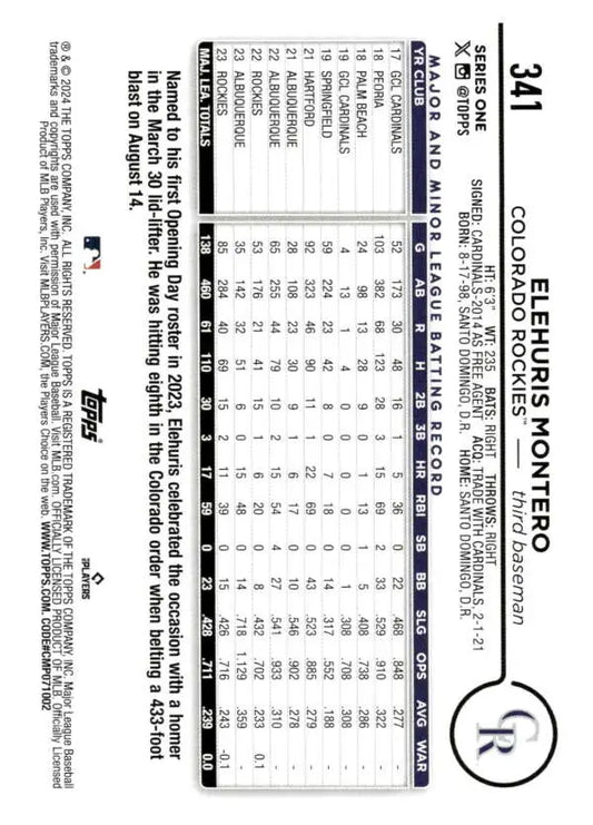 2024 Topps #341 Elehuris Montero NM-MT Colorado Rockies Baseball Card