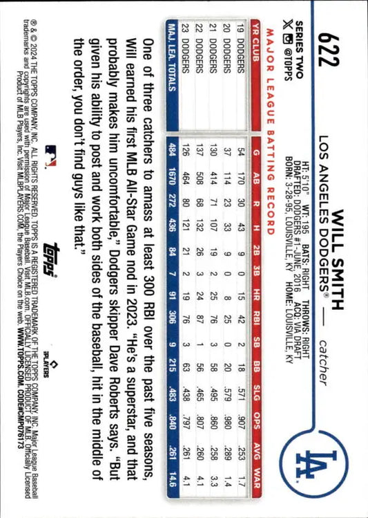 2024 Topps #622 Will Smith NM-MT Los Angeles Dodgers Baseball Card