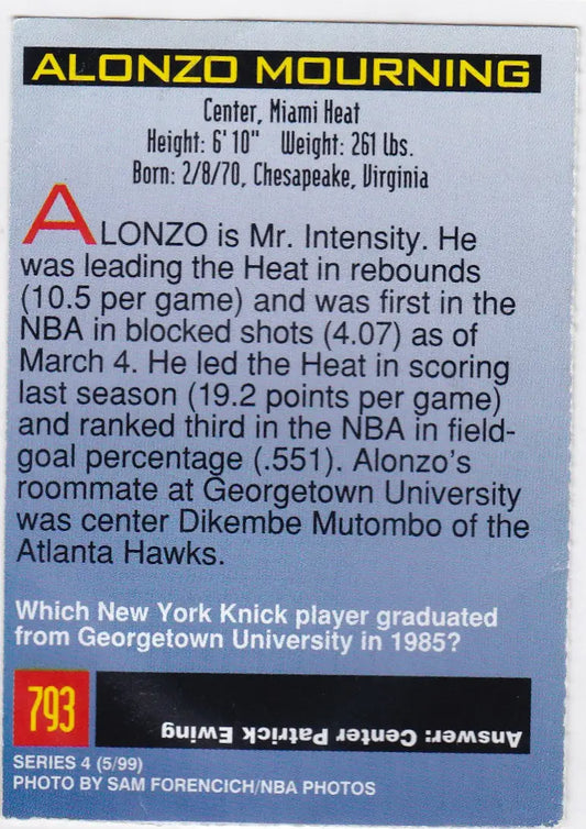 1999 Sports Illustrated for Kids # 793 Alonzo Mourning Miami Heat