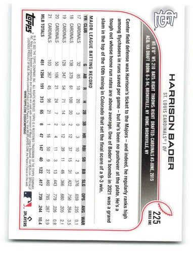 2022 Topps #225 Harrison Bader NM-MT Cardinals ID:42203