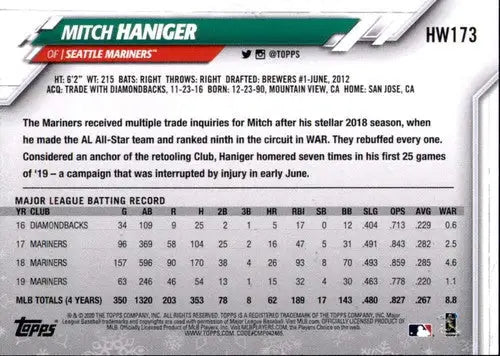 2020 Topps Holiday #HW173 Mitch Haniger NM-MT Mariners ID:47877