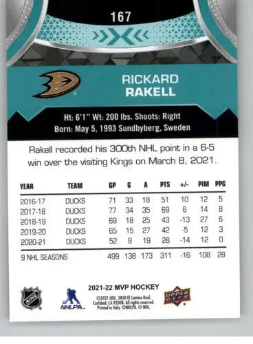 2021-22 Upper Deck MVP #167 Rickard Rakell NM-MT Ducks ID:39427