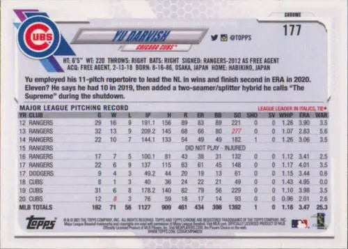 2021 Topps Chrome #177 Yu Darvish NM-MT Cubs