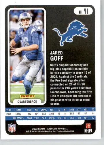2022 Panini Absolute Green #41 Jared Goff NM-MT Lions ID:49257