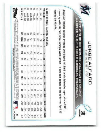 2022 Topps #36 Jorge Alfaro NM-MT Marlins ID:40532