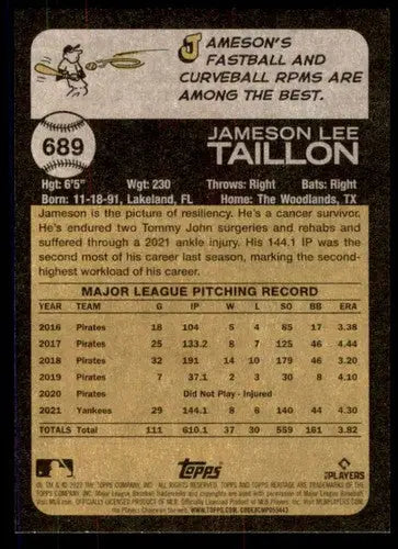 2022 Topps Heritage High Number #689 Jameson Taillon NM-MT Yankees ID:56049