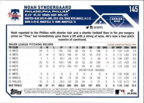 2023 Topps #145 Noah Syndergaard NM-MT Phillies ID:56791