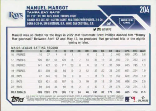 2023 Topps #204 Manuel Margot NM-MT Rays ID:54040