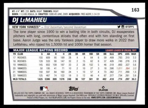 2023 Topps Big League #163 DJ LeMahieu NM-MT Yankees ID:51502
