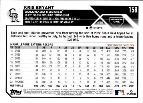 2023 Topps #158 Kris Bryant NM-MT Rockies ID:58653