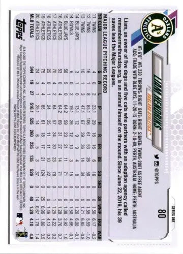2021 Topps #80 Liam Hendriks NM-MT Athletics