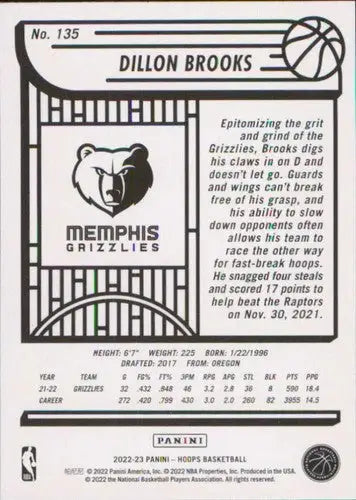 2022-23 Panini NBA Hoops #135 Dillon Brooks NM-MT Grizzlies ID:51955
