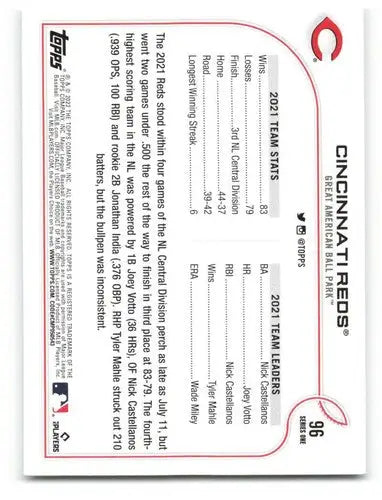 2022 Topps #96 Cincinnati Reds NM-MT ID:47700