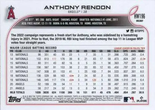 2022 Topps Holiday #HW196 Anthony Rendon NM-MT Angels ID:48110