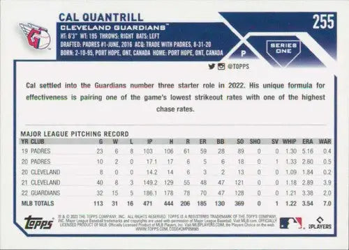 2023 Topps #255 Cal Quantrill NM-MT Guardians ID:56840