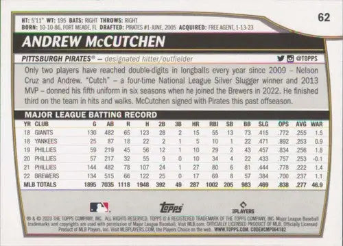 2023 Topps Big League #62 Andrew McCutchen NM-MT Pirates ID:51464