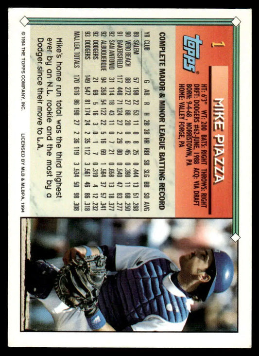 1994 Topps #1 Mike Piazza EX/NM Los Angeles Dodgers Baseball Card