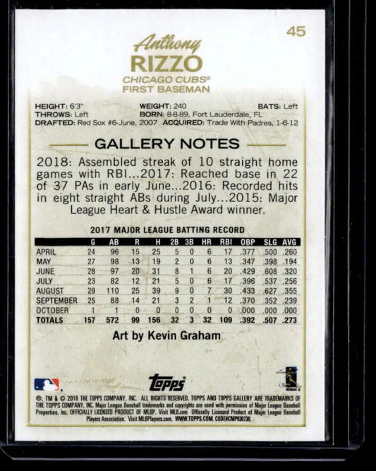 2018 Topps Gallery #45 Anthony Rizzo Wood NM-MT