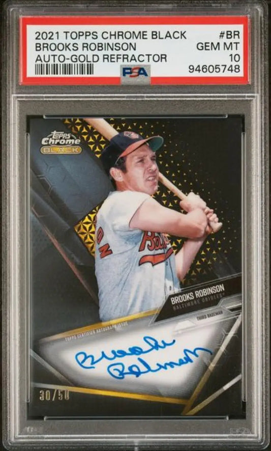 2021 Topps Chrome Black Refractor Gold #CBA-BR Brooks Robinson PSA 10 GEM MINT Auto 30/50 Baltimore Orioles Baseball Card