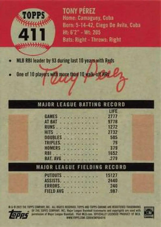 2022 Topps Chrome Platinum Anniversary #411 Tony Perez NM-MT Cincinnati Reds Baseball Card