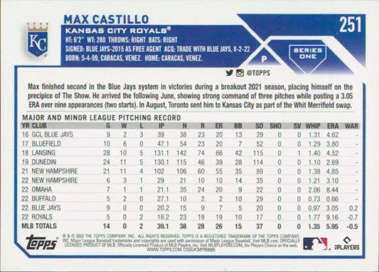 2023 Topps #251 Max Castillo NM-MT RC Rookie Kansas City Royals Baseball Card