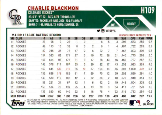 2023 Topps Holiday #H109 Charlie Blackmon NM-MT Colorado Rockies Baseball Card