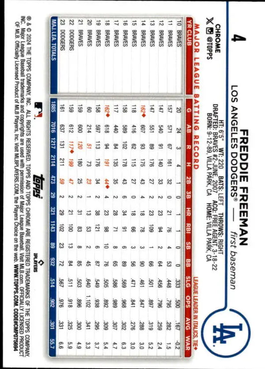 2024 Topps Chrome #4 Freddie Freeman NM-MT Los Angeles Dodgers Baseball Card