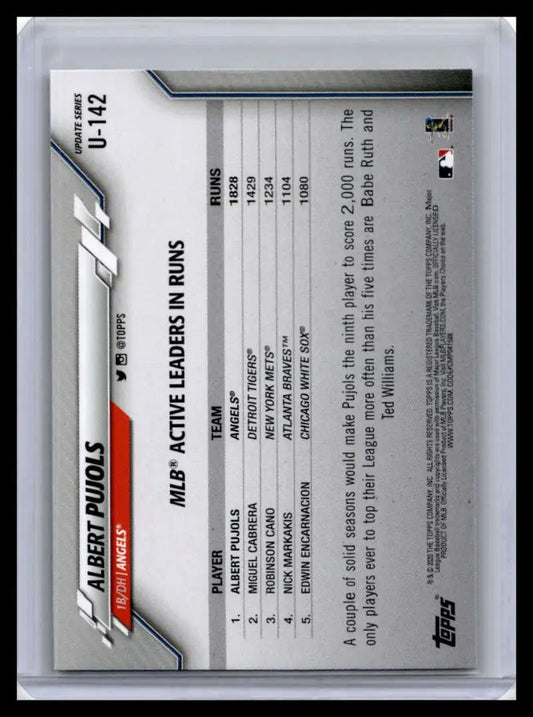 2020 Topps Update #U-142 Albert Pujols NM-MT Los Angeles Angels Baseball Card