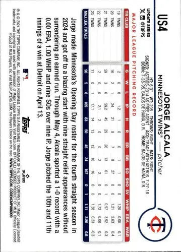 2024 Topps Update #US4 Jorge Alcala NM-MT Twins ID:74698