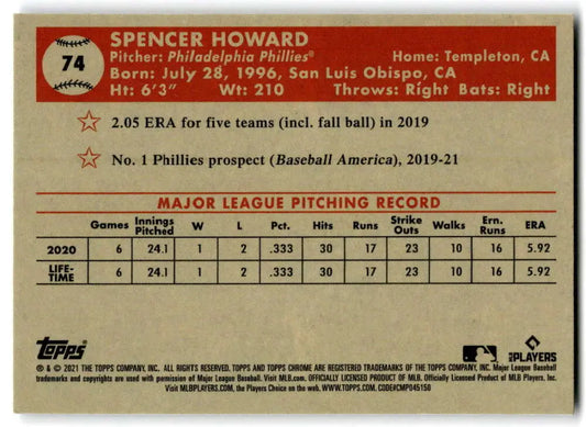 2021 Topps Chrome Platinum Anniversary #74 Spencer Howard NM-MT RC Rookie Philadelphia Phillies Baseball Card