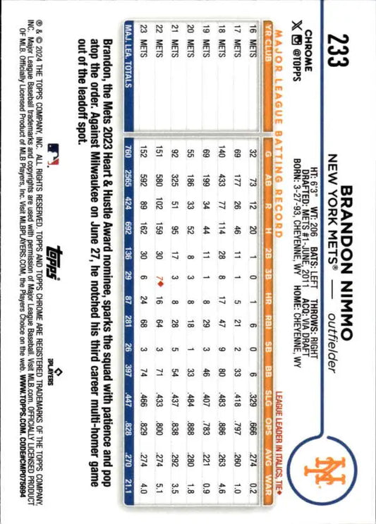 2024 Topps Chrome #233 Brandon Nimmo NM-MT New York Mets Baseball Card