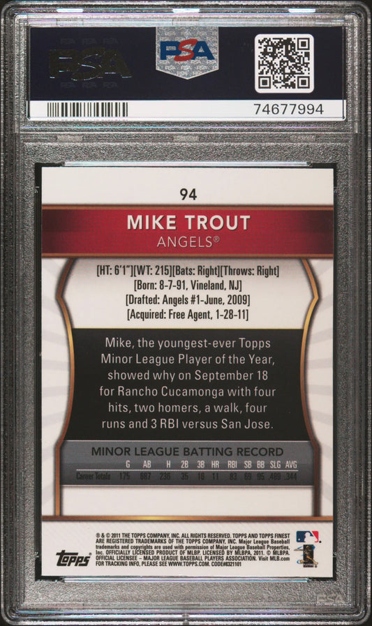 Mike Trout 2011 Topps Finest #94 PSA 9 Mint 7994