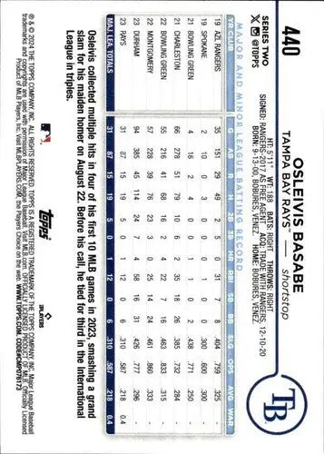 2024 Topps #440 Osleivis Basabe NM-MT RC Rookie Rays ID:75038