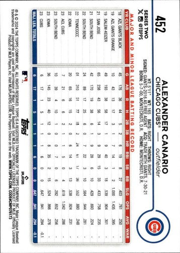 2024 Topps #452 Alexander Canario NM-MT RC Rookie Cubs ID:70956