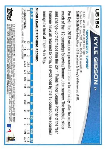 2013 Topps Update #US154 Kyle Gibson NM-MT RC Rookie Twins ID:72036