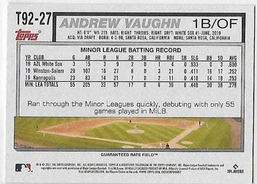 2021 Topps Update 1992 Topps Redux #T92-27 Andrew Vaughn NM-MT White Sox