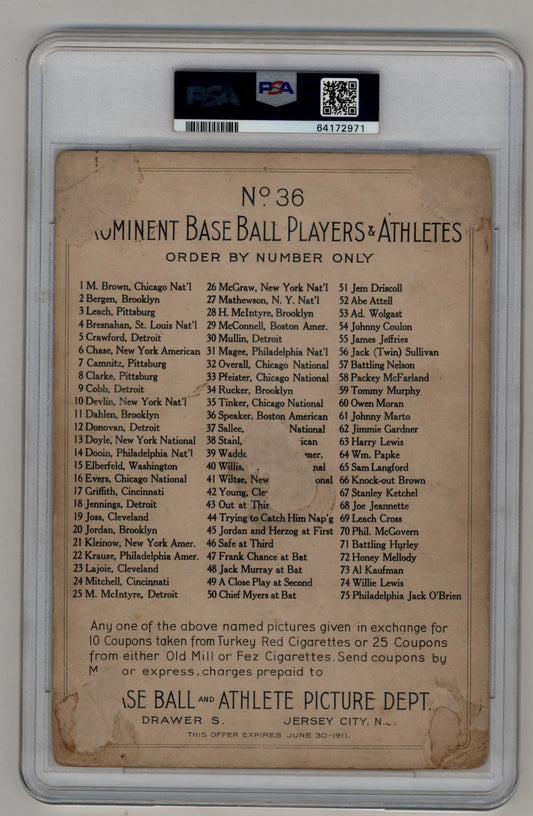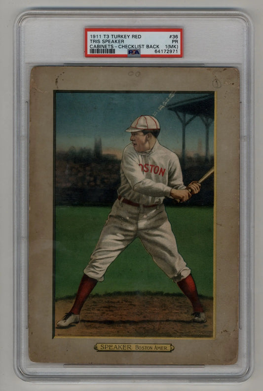 Tris Speaker 1911 T3 Turkey Red Cabinets-Checklist Back #36 PSA 1 (MK)