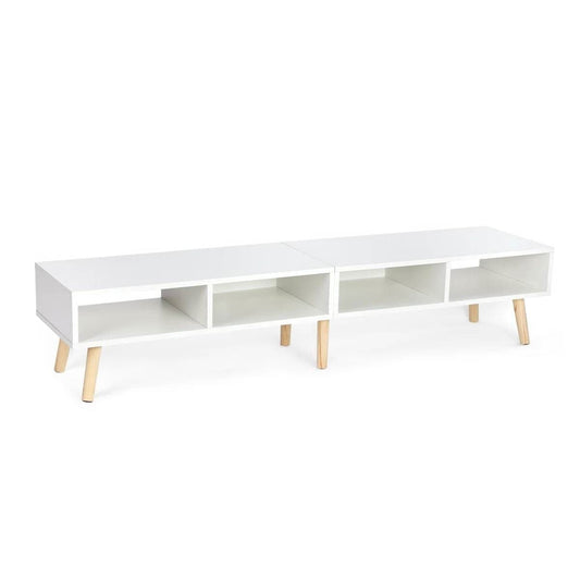 Modern Mid-Century Style TV Stand in White with Wood Legs for TVs up to 65-inch